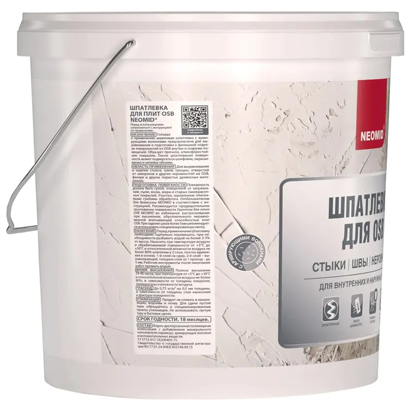 Обрабатываемая поверхность должна быть очищена от грязи, пыли, отслаивающихся элементов и жировых загрязнений. Наносить Шпатлевку необходимо на сухую и прочную поверхность. Обязательно предварительное грунтование специальным составом Неомид Грунтовка для плит OSB во избежание растрескивания при высыхании, обусловленного неравномерной впитывающей способностью плит OSB.