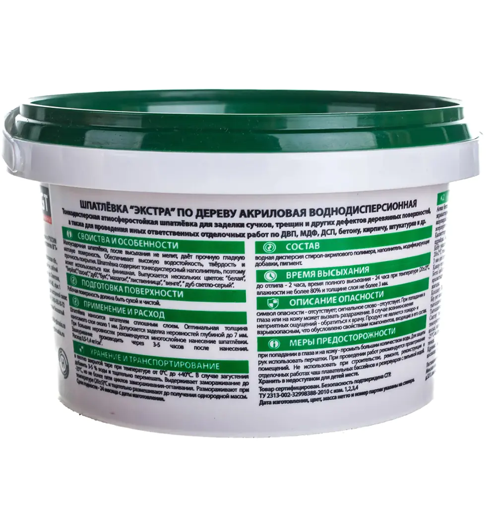 VGT Экстра – тонкодисперсная шпатлевка для заделки сучков, трещин, иных деревянных поверхностей, а также для проведения иных ответственных отделочных работ по ДВП, МДФ, ДСП, бетону, кирпичу, штукатурке и др. Цвет: сосна.