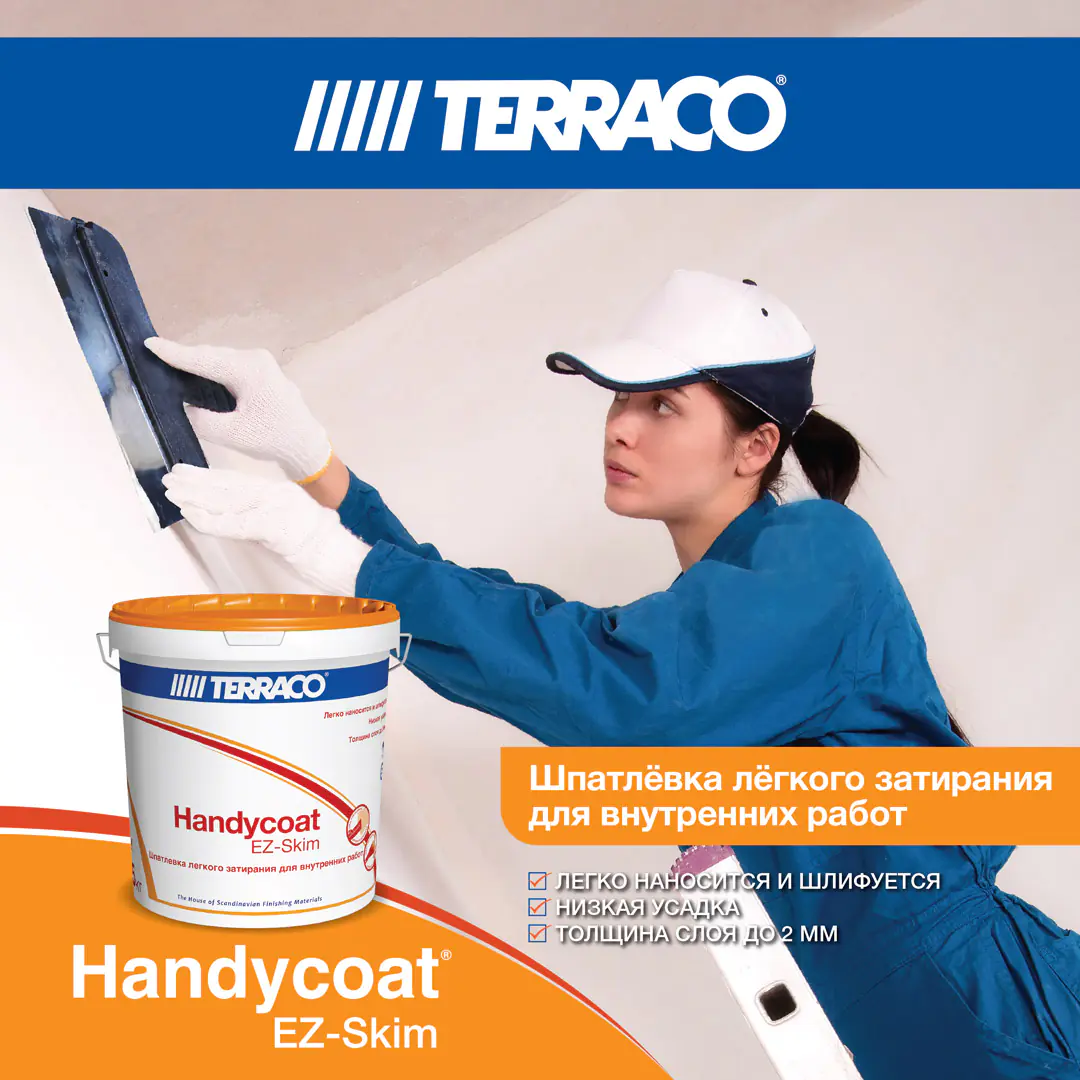 Handycoat EZ-Skim предпочтителен для выравнивания потолков и сложных архитектурных поверхностей помещения.