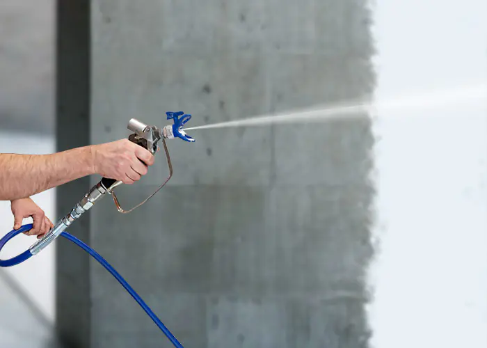 Sprayplaster ВС наносится распылителем и выравнивается с помощью специальных широких стальных шпателей. Избыток материала со шпателя может быть возвращен обратно в емкость и использован для последующего нанесения.