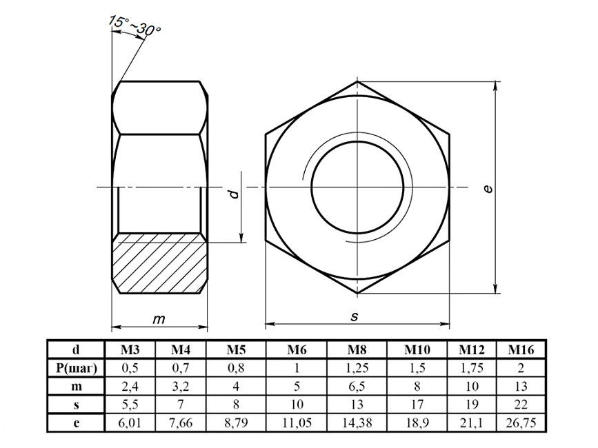 Гайка М16 шестигранная