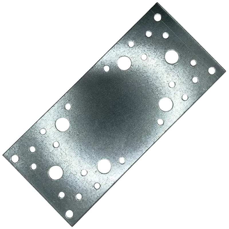 Крепежная пластина оцинкованная, предназначена для соединения различных элементов деревянных конструкций. Множество перфорированных отверстий различного диаметра делает пластину более универсальной по используемому крепежу. Толщина 2мм.