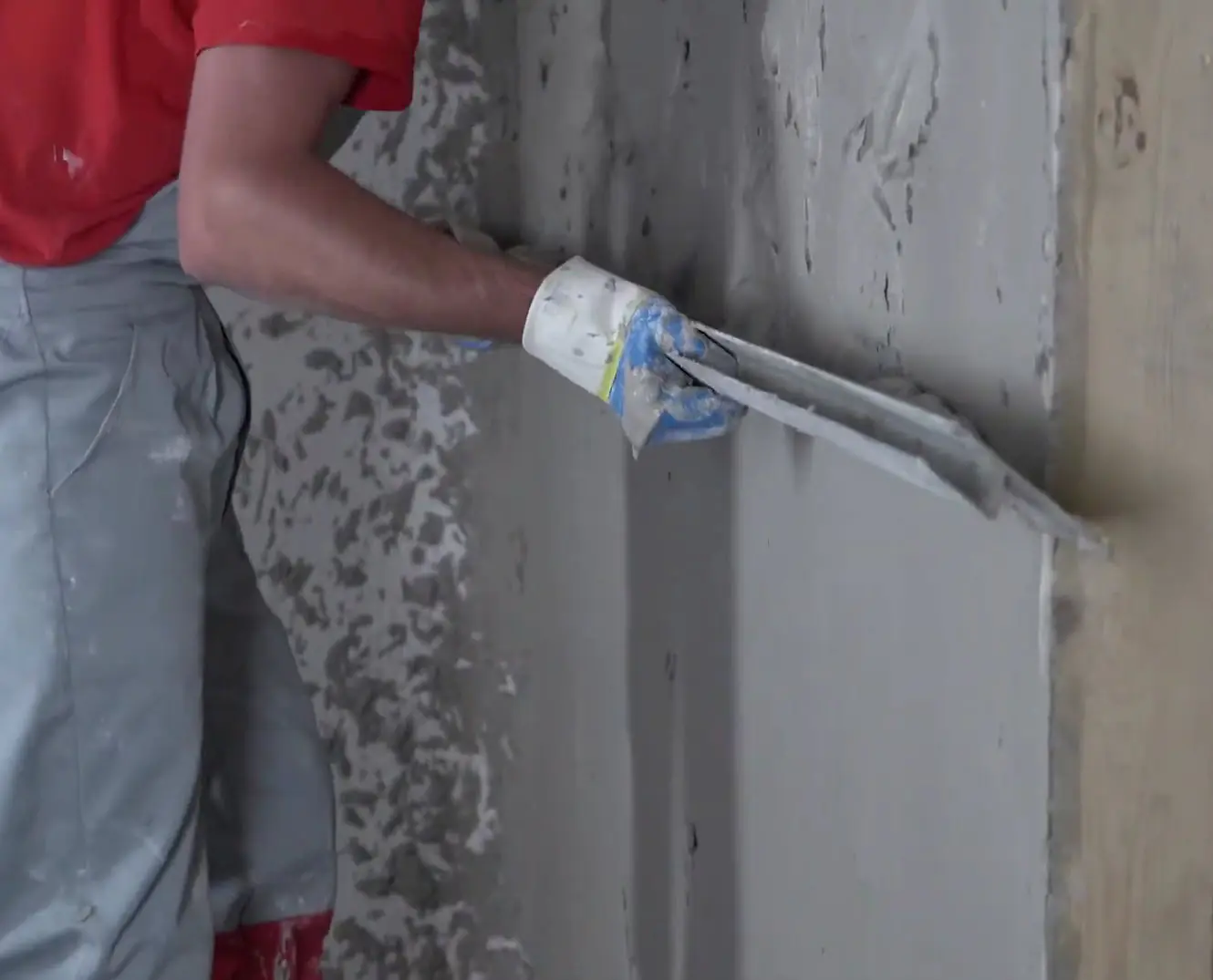 Раствор наносится на подготовленное основание при помощи металлической терки, шпателя или кельмы с последующим выравниванием при помощи штукатурного правила. Не использовать ржавый инструмент и посуду! Толщина слоя за одно нанесение 5…30 мм. Каждый последующий слой наносится через 2…3 часа после нанесения предыдущего. Для получения идеально гладкой поверхности после начала схватывания поверхность штукатурки смачивается водой, затирается губчатой теркой и заглаживается широким металлическим шпателем. Неровности также можно устранить после полного высыхания штукатурки — поверхность шлифуется абразивной сеткой или наждачной бумагой. Время высыхания — 12 часов.