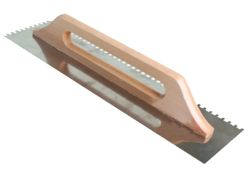 Гладилка зубчатая предназначена Bauwelt 48х13 см (зуб 6х6 мм) для разглаживания отштукатуренной поверхности, а также для равномерного нанесения клеевого раствора при кладке плитки и выравнивания стен. Полотно из нержавеющей стали, деревянная лакированная ручка.