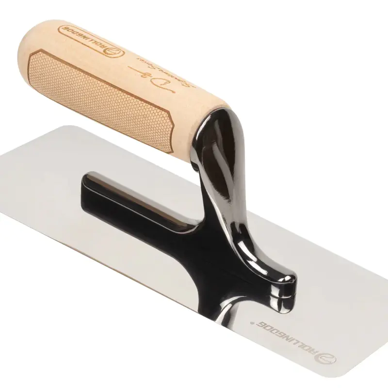 Венецианская кельма Rollingdog Doberman (50512) используется в отделочных и строительных работах для нанесения и разравнивания раствора декоративной штукатурки на поверхность, позволяя создать покрытие с эффектной текстурой. Рабочая поверхность кельмы изготовлена из высококачественной стали с зеркальной полировкой и имеет скругленные углы, благодаря чему инструмент прослужит долгое время. Деревянная рукоятка не скользит в руке при работе.