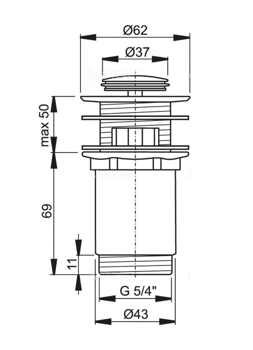 Донный клапан AlcaPlast A391 CLICK/CLACK предназначен для установки на раковину совместно со смесителем, у которого нет донного клапана.
