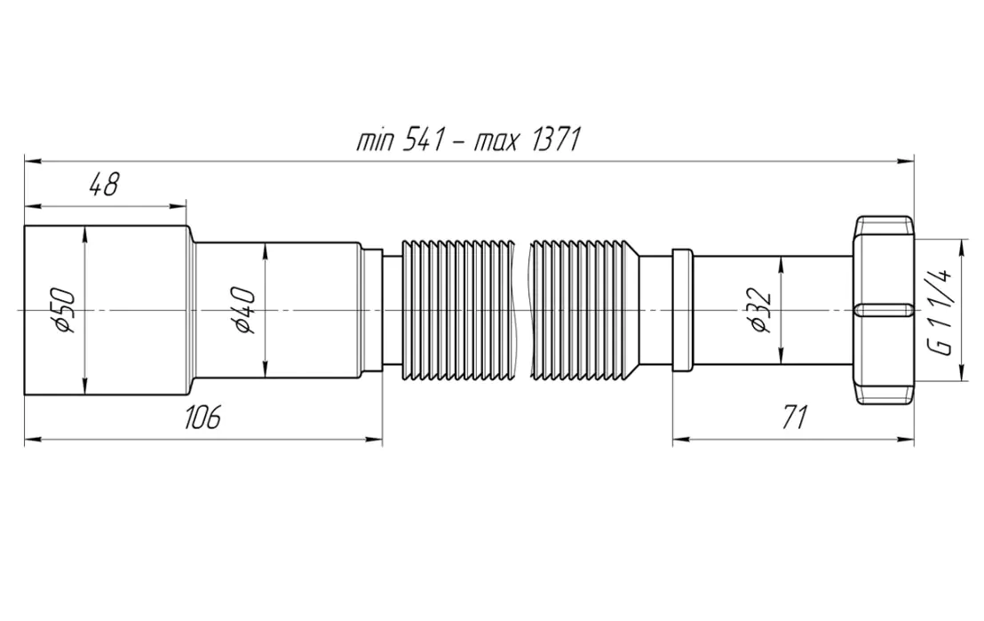 Гибкая гофрированная труба без выпуска для моек и умывальников АНИ Пласт K216 применяется для подключения умывальника к системе канализации. Труба 32 мм с помощью накидной гайки 1 1/4 крепится к выпуску умывальника, а гофрированная часть сифона легко сгибается для придания нужной формы и создания гидрозатвора. Гофротруба бесшовная, что исключает возможность протечки в местах спайки. Длина трубы 541-1371мм. Выход в канализацию диаметром 40 или 50 мм. Материал сифона: полипропилен.