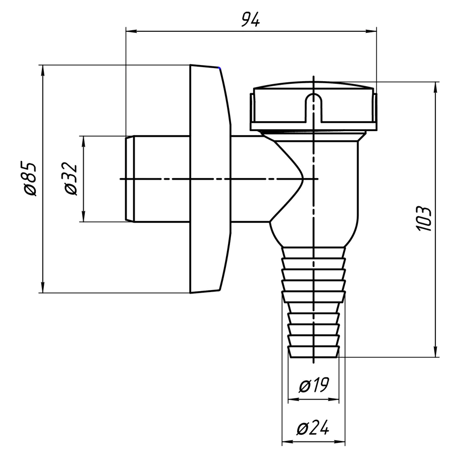 Минисифон для стиральной машины. Сифон имеет систему сухого затвора. Материал полипропилен.