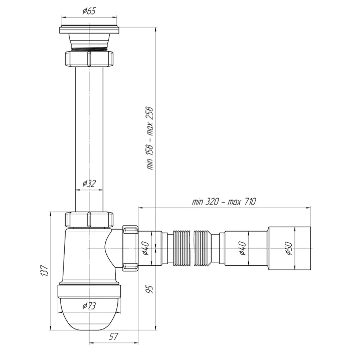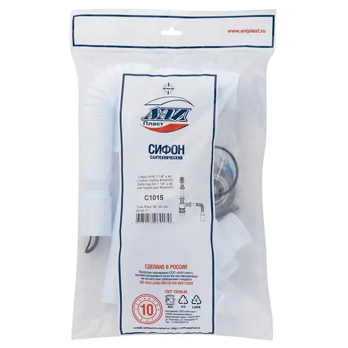 Сифон АНИ Грот C1015 предназначен для умывальников с диаметром сливного отверстия 40-52 мм. Тип сифона: бутылочный. Комплектуется гибкой трубой 40 x 40/50мм для отвода в канализацию. Конструкция позволяет легко, без демонтажа, снять отстойник (стакан) и почистить сифон в случае засорения, достать случайно упавшие в слив раковины мелкие ценные вещи. Сифон прост в установке.