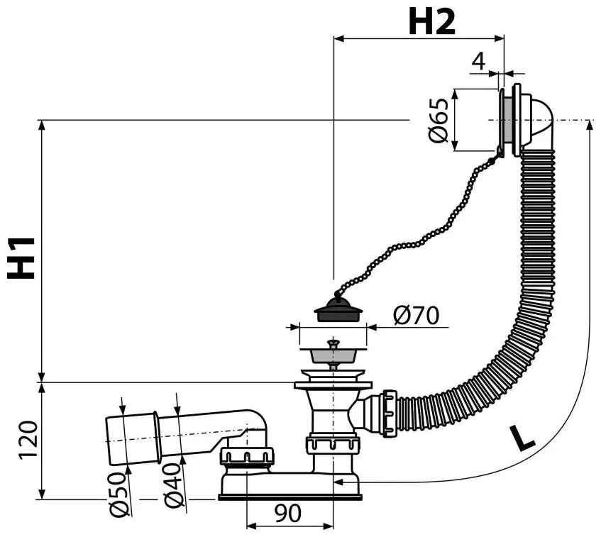 Сифон для ванны хромированный Alcaplast A501 с переливом представляет собой сифон из высококачественного ABS-пластика с решеткой из нержавеющей стали и гибким переливом, предназначенный для слива сточных вод ванн в канализационную систему с диаметром выхода для подключения к канализации.