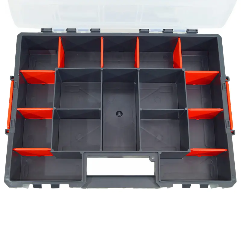 Органайзер Qbrick Regular Organizer 500 – это новое решение для организации небольших предметов. Несомненным преимуществом является возможность модульного комбинирования органайзеров одного размера. Боковые разъемы, помимо функции соединения с корпусом, позволяют подсоединить другую модель органайзера. Регулируемые перегородки и удобное расположение отсеков позволяют организовать внутреннее пространство в зависимости от потребностей. Содержимое органайзеров защищено прочной прозрачной крышкой со специальным замком, что дополнительно предотвращает случайное закрытие крышки во время использования.
