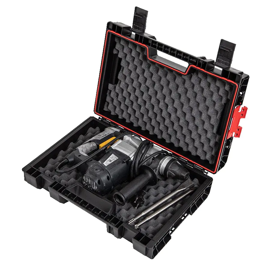 Qbrick System PRO Toolcase – универсальный модульный контейнер для электроинструментов. Этот ящик гарантирует безопасное хранение и переноску инструментов. Он оснащен двойной защитной пеной, а прочные полиамидные застежки дополнительно защищают его содержимое. Установленный в крышке уплотнитель обеспечивает защиту от влаги и пыли.