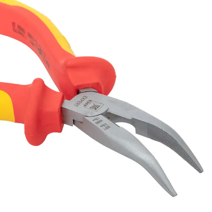 Длинногубцы изогнутые используются для захвата и удержания мелких элементов, проволоки, колец, винтиков и выполнения различных работ в труднодоступных местах.