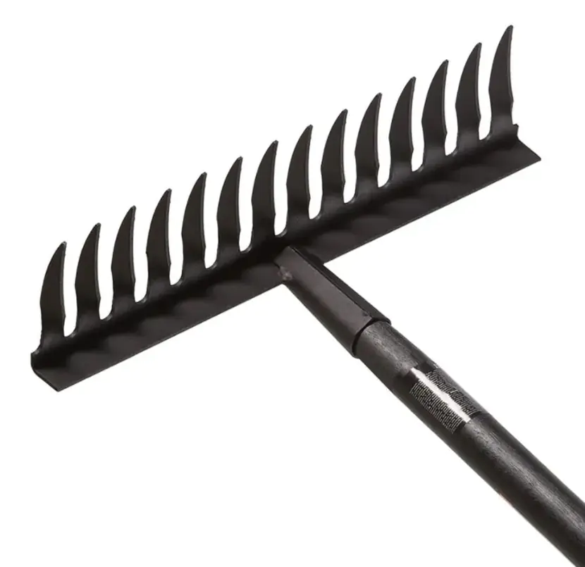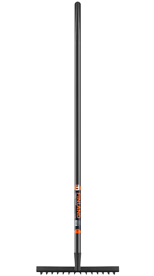 Грабли с черенком 1705-Ч Finland предназначены для уборки листвы, веток, мусора, а также для рыхления почвы. Широкие зубья надежно удерживают собранный мусор, позволяя убрать территорию за один проход. Ширина граблей составляет 39 см, длина граблей — 138 см. Черенок выполнен из дерева. Витые металлические зубья имеют антикоррозийное покрытие.