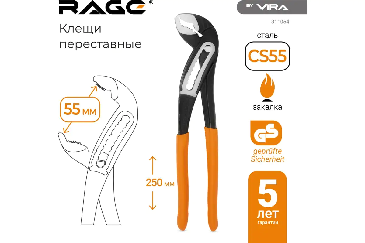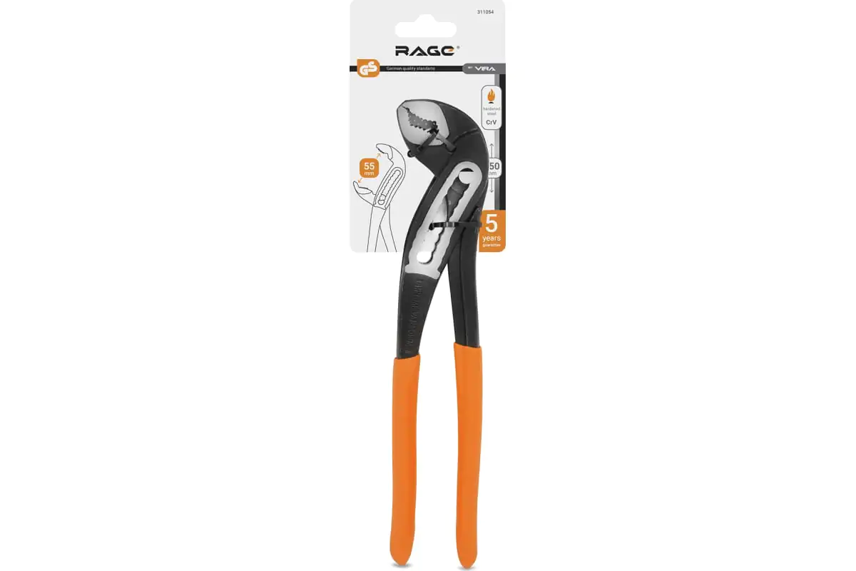 Переставные клещи с широким зевом VIRA RAGE 311054 предназначены для профессиональной эксплуатации, подойдут для монтажа сантехнического, отопительного и вентиляционного оборудования. Губки инструмента изготовлены из инструментальной стали, поэтому устойчивы к высоким нагрузкам. Клещи подойдут для опрессовки и гибки деталей. Рукоятка удобно лежит в руке благодаря противоскользящему покрытию.