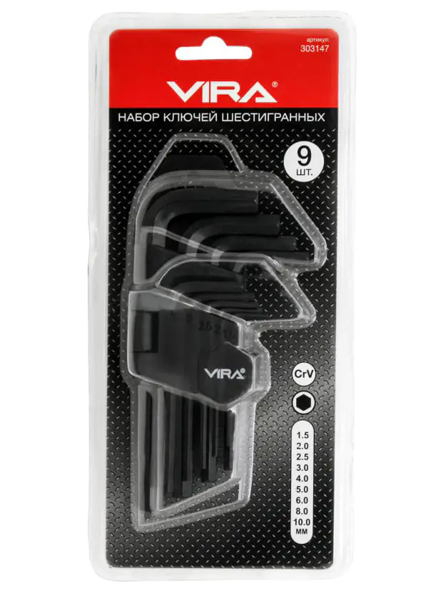 Набор шестигранных ключей 9 штук Vira позволяет быстро и аккуратно осуществить демонтаж креплений требуемого сечения размерами от 1.5 до 10 мм. Благодаря Г-образной конструкции приспособлений их можно использовать в условиях ограниченного пространства. Ключи выполнены из хром-ванадиевой стали, отличаются высокой прочностью и, как следствие, повышенной износостойкостью. Производство Китай.