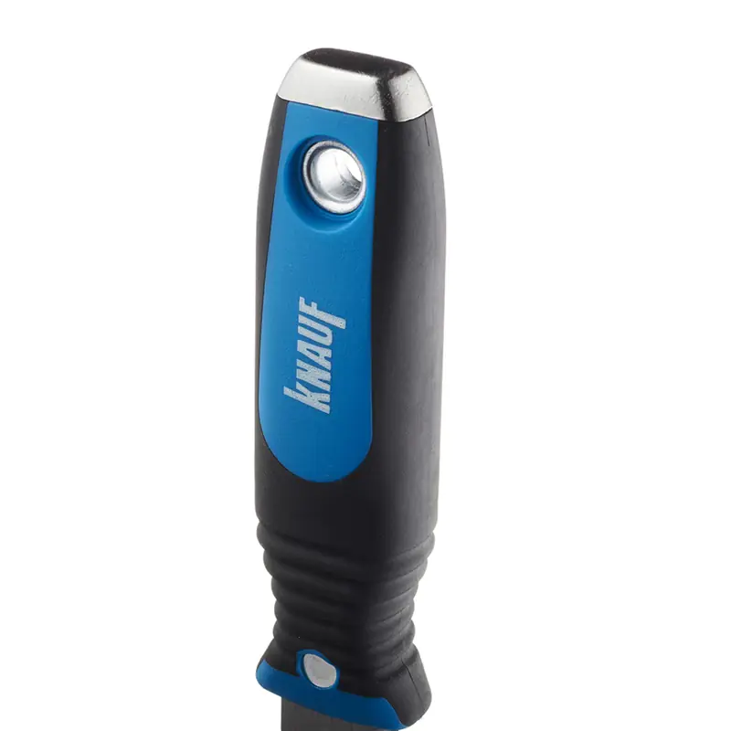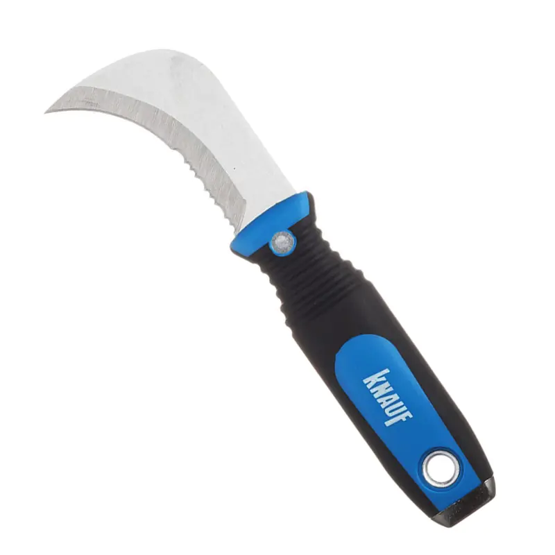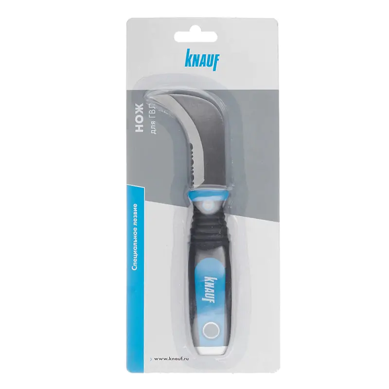 Нож предназначен для резки гипсоволокнистых суперлистов KNAUF (ГВЛ, ГВЛВ). Используется для прорезания бороздок в сердечнике ГВЛ (ГВЛВ) с целью наметить грань его излома. Металлическая рабочая часть из нержавеющей стали с пластиковой рукоятью. Общая длина около 205 мм.