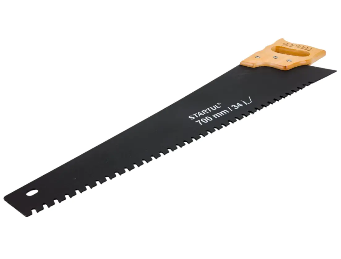 Ножовка по газобетону 700мм 34 зуба STARTUL MASTER имеет твердосплавные напайки из карбида вольфрама со специальным углом заточки для распила газобетонных блоков. Полотно изготовлено из закаленной стали толщиной 1,6 мм и покрыто слоем тефлона.