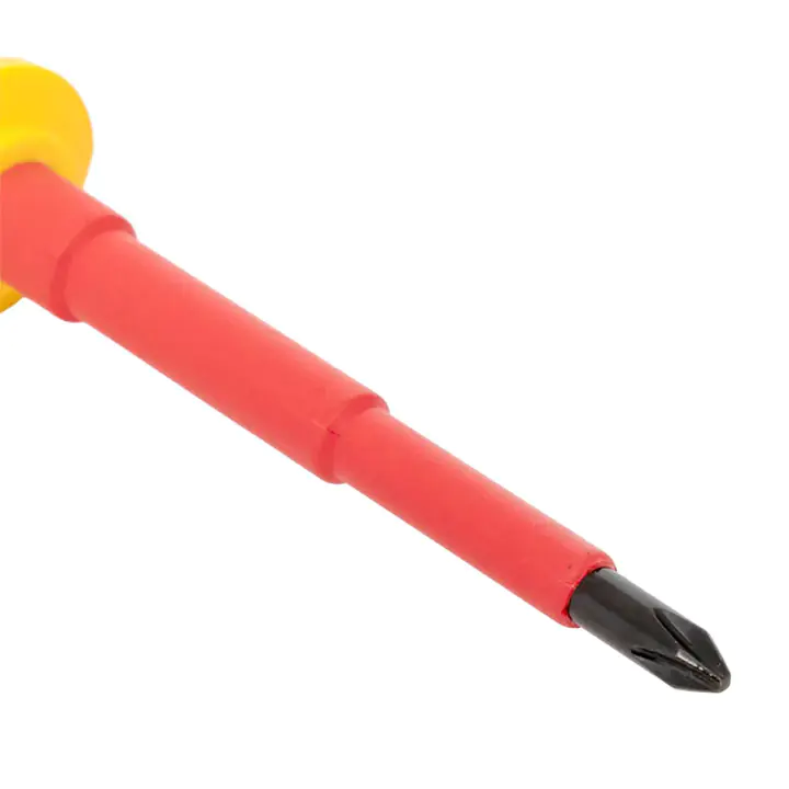 Диэлектрическая отвертка предназначена для работы с крепежом, который используется в электротехнических устройствах, находящихся под напряжением. Благодаря специальному изоляционному покрытию, исключается риск поражения пользователя током, даже когда напряжение достигает 1000 В.