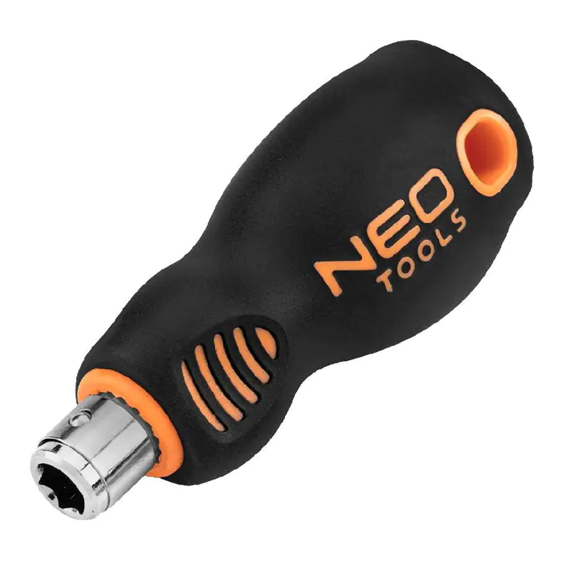 Отвертка переставная "бочка" NEO с рукояткой и двусторонним наконечником (шлицевой, крестовой). Магнитные наконечники изготовлены из чрезвычайно прочной хромомолибденовой стали. Удобная двухкомпонентная рукоятка стойкая к воздействию химических веществ, масел и смазок.