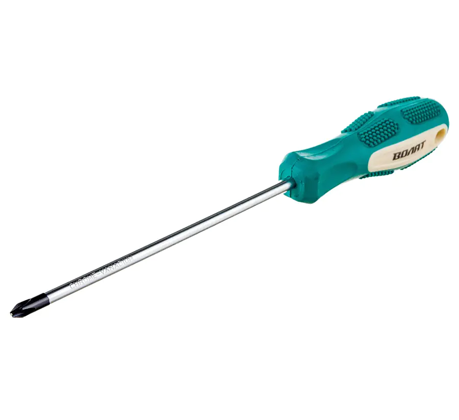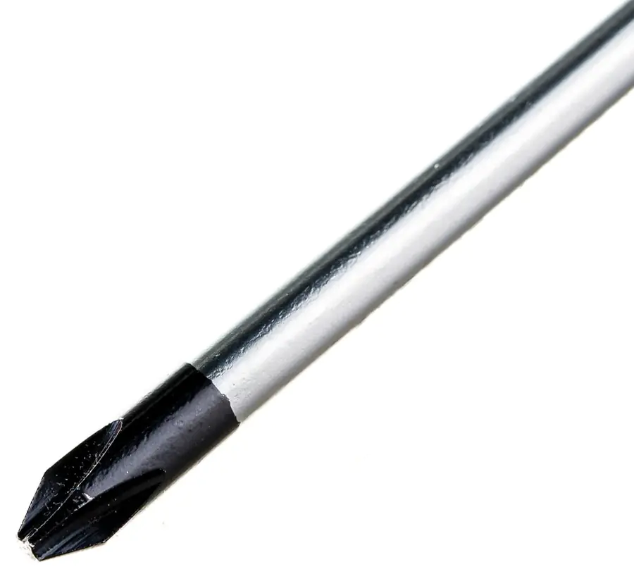 Рабочая часть имеет конусообразную форму и четыре грани, которые входят в крестовой шлиц крепежа. Благодаря этому получается больше точек соприкосновения, а рабочий контакт увеличивается почти вдвое, по сравнению с закручиванием крепежа плоской отверткой. Удается надежно затянуть крепеж, что очень важно, например, при соединении деталей конструкции автомобиля, техники или оборудования.