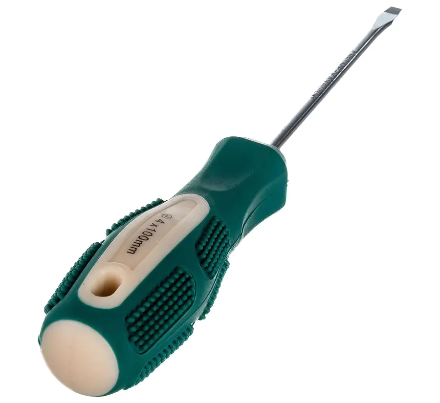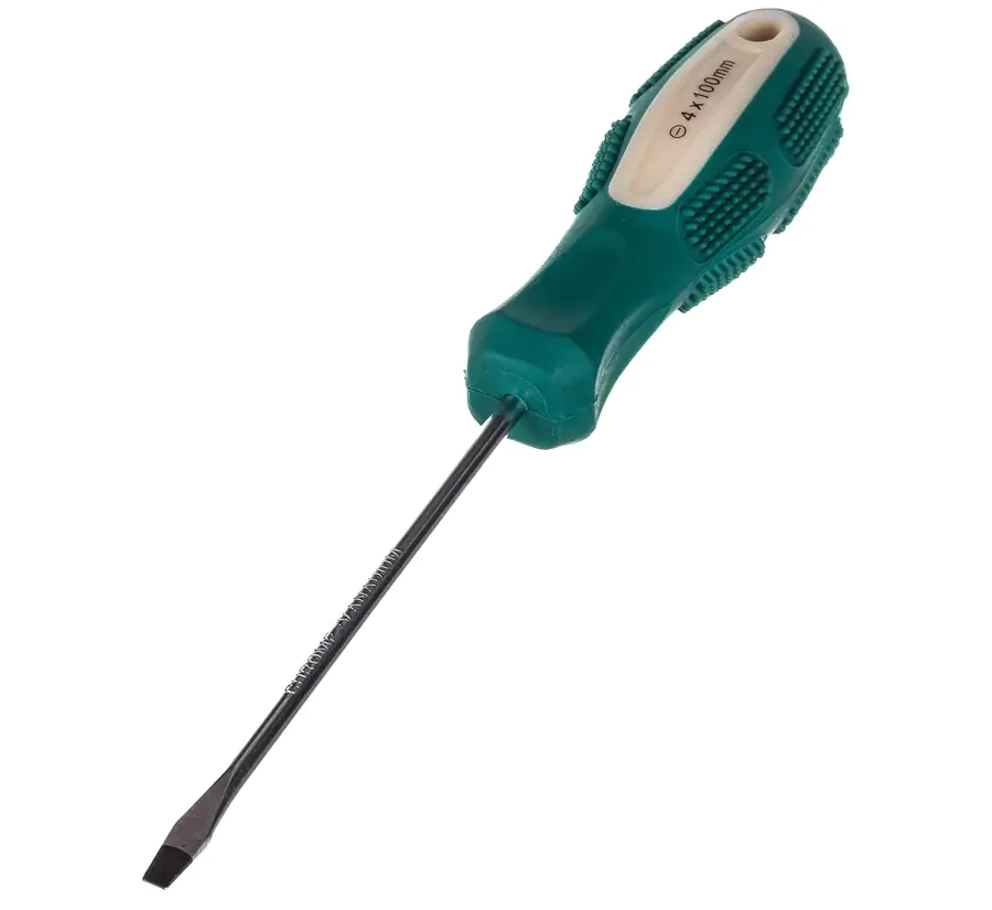 Отвертка шлицевая (плоская) SL4 ВОЛАТ применяется при работе с крепежными изделиями, имеющими шлицевые головки. Закаленное жало отвертки изготовлено из легированной стали. Двухкомпонентная рукоятка увеличивает удобство при работе с инструментом. Размер шлица 4 мм. Длина 100 мм.