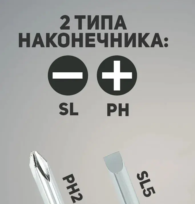 - Тип наконечника: PH2/SL5.