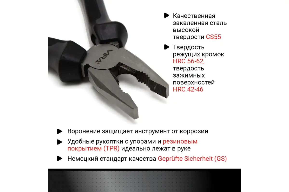 Плоскогубцы VIRA RAGE – предназначены для фиксации деталей во время проведения столярно-слесарных работ. Кромки выполнены из инструментальной стали, прочной и износостойкой. Рукоятки изготовлены из двухкомпонентного материала, который повторяет форму руки.