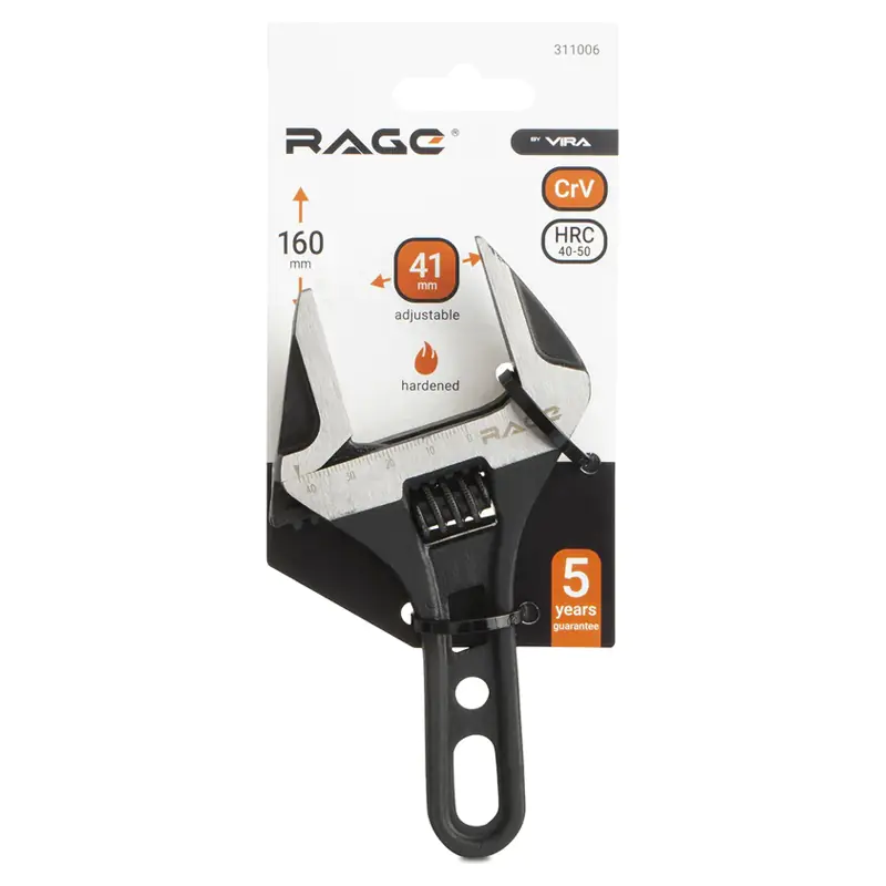 Разводной ключ VIRA с укороченной ручкой 160 мм RAGE 311006 подходит для работы в труднодоступных местах, но может быть использован и наравне с обычным разводным ключом. Ключ изготовлен из прочной хромованадиевой стали твердостью 40-50 HRC. Это обеспечивает высокую прочность, надежность и долговечность. Эргономичная рукоять удобна при работе.