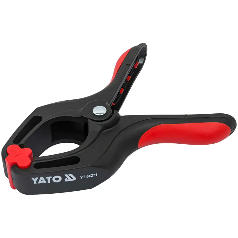 Пружинная струбцина YATO 150 мм YT-64271 изготовлена из пластика и оснащена мощной нажимной пружиной и подвижными плоскими нажимными наконечниками. Имеет прорезиненные рукояти.