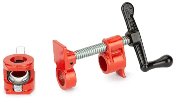 Отличие трубной струбцины VIRA от обычной F - образной струбцины в том, что у трубной нет встроенного стержня. Используется для широкого спектра задач – при удержании, сборке, склеивании деталей. Неподвижная часть оснащена винтовым упором, который накручивается на резьбу, а подвижная часть подпружиненным фиксатором для быстрого подбора ширины захвата. Она надевается на любую трубу подходящего диаметра с резьбой на одном конце (труба докупается отдельно).