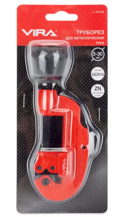 Труборез для металлических труб VIRA подходит для труб диаметром до 30 мм. Используется для работы с алюминиевыми, медными, латунными и тонкостенными стальными трубами. Прочный корпус позволяет направить усилие реза непосредственно на металлическую трубу. Материал резцов — легированная сталь. Корпус выполнен из алюминиевого сплава.
