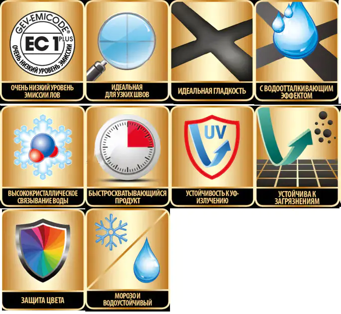 Пропорции смешивания с добавкой блесток Sopro: 1,3 – 1,4 л воды на 5 кг фуги + максимум 2 мешка (100 г) золотых либо серебряных блесток Sopro;