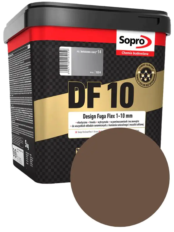 Фуга Sopro DF 10 (Сопро ДФ 10) – эластичная декоративная затирка, подходит для фугования всех керамических облицовок, бетонных плит и плит из натурального камня, стеклянной мозаики, конгломератов с шириной шва 1–10 мм. DF 10 подходит для применения в помещениях и снаружи, на стенах и полах. Пригодна для фугования тонких плиток и плит (толщиной менее 4 мм).