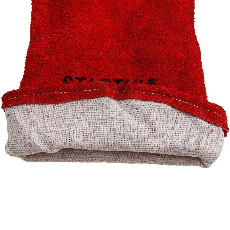 Изготавливаются такие краги из высококачественного спилка, который отстрочен надежным двойным швом, усиливающим прочность изделия. Хлопчатобумажная подкладка обеспечивает дополнительный комфорт и позволяет использовать краги при температурах ниже нуля. Швы на крагах выполняются особо прочной негорючей нитью и закрыты вставками из спилка, которые предотвращают прогорание ниток.