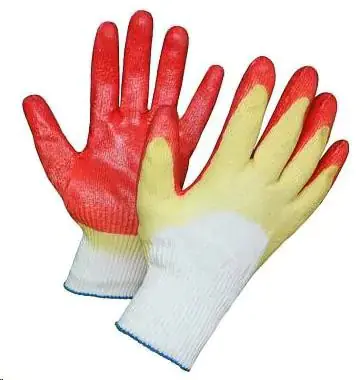 Усиленная защита рук от механических воздействий и истирания. Двойное латексное покрытие ладонной части и пальцев обеспечивает хороший захват гладких предметов. Внешняя сторона не покрыта латексом – это обеспечивает воздухообмен. Класс вязки 13. Размер 9. Цвета: красные и зеленые.
