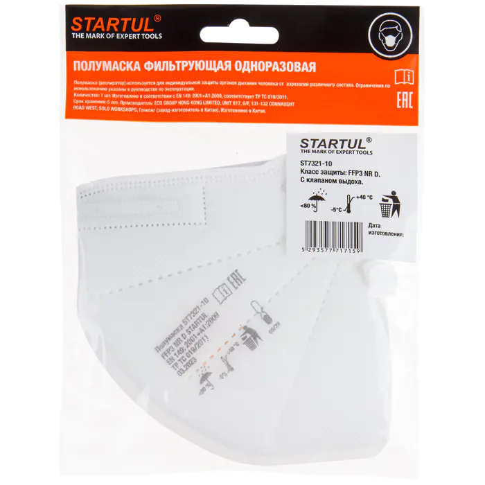 Полумаска фильтрующая STARTUL с клапаном выдоха, легкая и мягкая из высокоэффективного фильтрующего материала обеспечивает эффективную фильтрацию при минимальном сопротивлении дыханию. Внутренний слой выполнен из гипоаллергенного материала, что создаёт повышенный комфорт при длительном использовании. Индивидуальная упаковка предотвращает загрязнение респиратора.