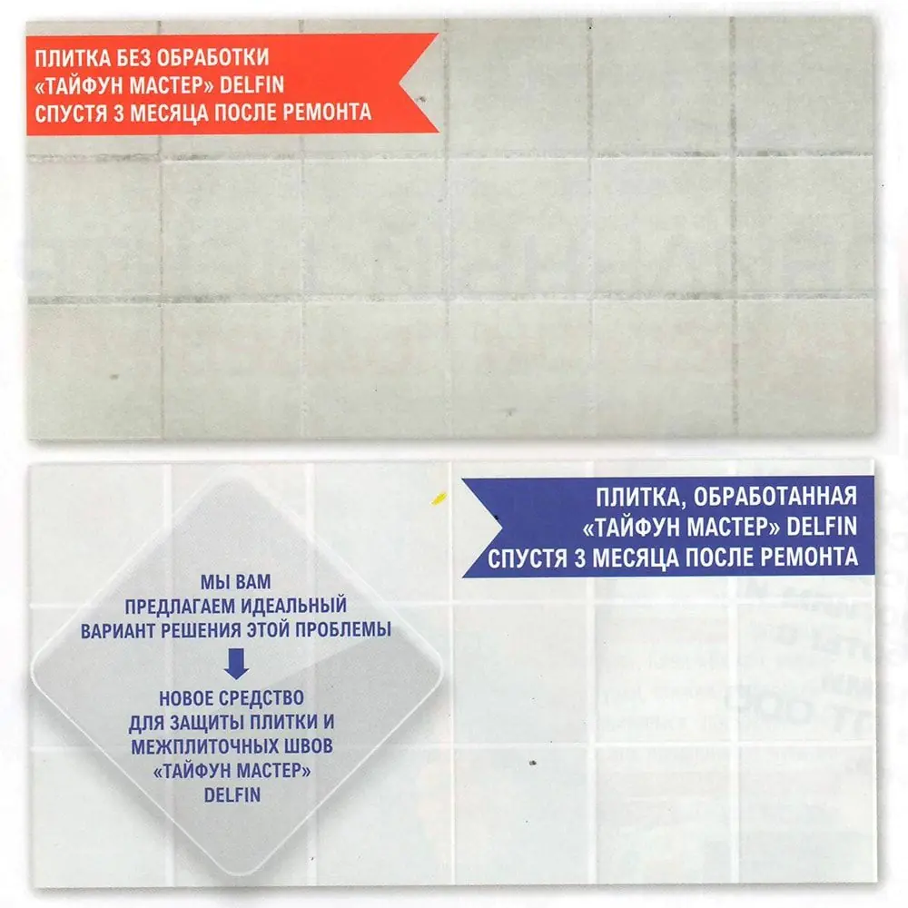 «Тайфун Мастер» DELFIN производится в виде готового к применению состава, предназначенного для защиты плитки и межплиточных швов. Благодаря специально подобранной рецептуре продукт обеспечивает:
