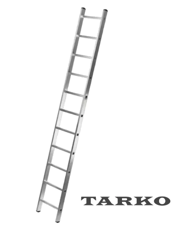 Лестница алюминиевая односекционная 11 ступеней TARKO. Общая высота - 311 см. Лёгкая и прочная. Алюминиевый профиль, широкие алюминиевые ступени с рифленой антискользящей поверхностью, пластиковые насадки на ножках обеспечивают стабильность. Надёжно закреплённые в стойках пластиковые наконечники препятствуют скольжению. Соответствует ТУ BY 190212942.001-2011.
