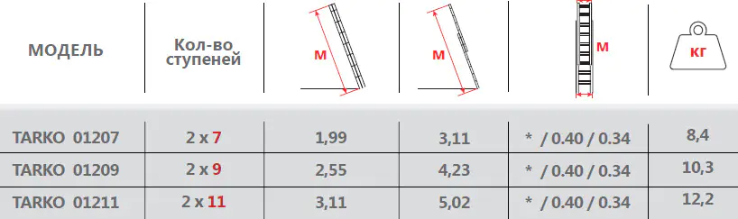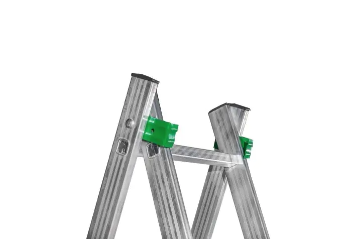 Лестница-стремянка алюминиевая двухсекционная 2х9 ступеней TARKO SKALA (01209). Общая высота - 255 см (426 см если использовать как приставную). Лёгкая и прочная. Алюминиевый профиль, широкие алюминиевые ступени с рифленой антискользящей поверхностью, пластиковые насадки на ножках обеспечивают стабильность. Надёжно закреплённые в стойках пластиковые наконечники препятствуют скольжению. Соответствует ТУ BY 190212942.001-2011.