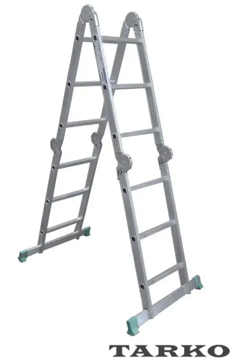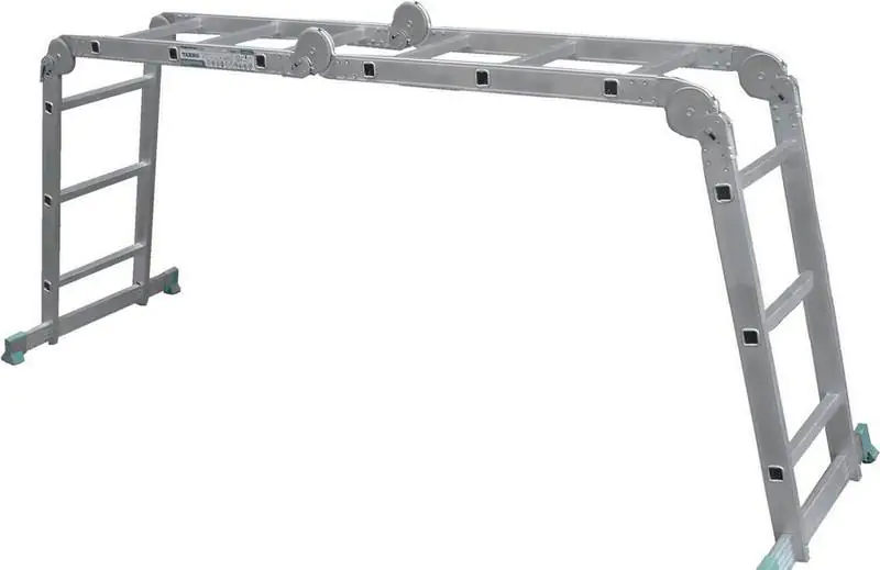 Шарнирная 4-секционная лестница состоит из отдельных секций, последние из которых соединены между собой специальными шарнирами.