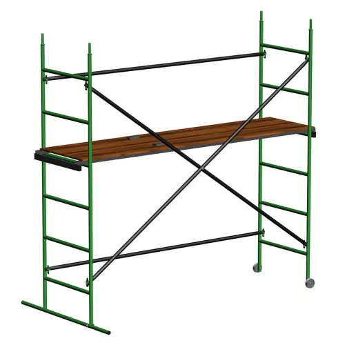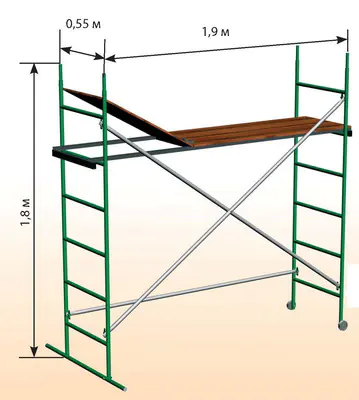 Подмости изготовлены из тонкостенной стали с полимерным порошковым покрытием, что делает их достаточно легкими.