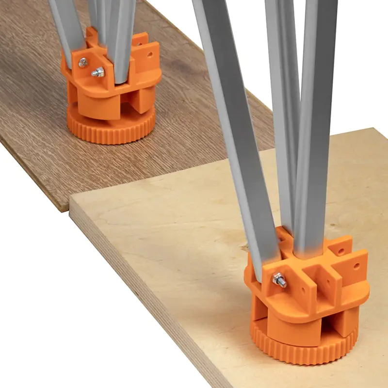 Раскладной рабочий стол – это наиболее гибкое решение для вашей рабочей площадки, рабочего места или мастерской. Не требует сборки, раскладывается за считанные секунды. Представляет собой универсальное основание рабочей поверхности для работы на улице или в помещении. Обладает высокой устойчивостью благодаря пяткам с возможностью регулировки, позволяют регулировать высоту в диапазоне 25 мм, таким образом можно компенсировать неровности пола. Подстолье DLT 1833 можно разложить в разных размерах и получить рабочую поверхность в диапазоне (ширина 45 см, длина 45 см, высота 101 см) до (ширина 150 см, длина 150 см, высота 87 см).