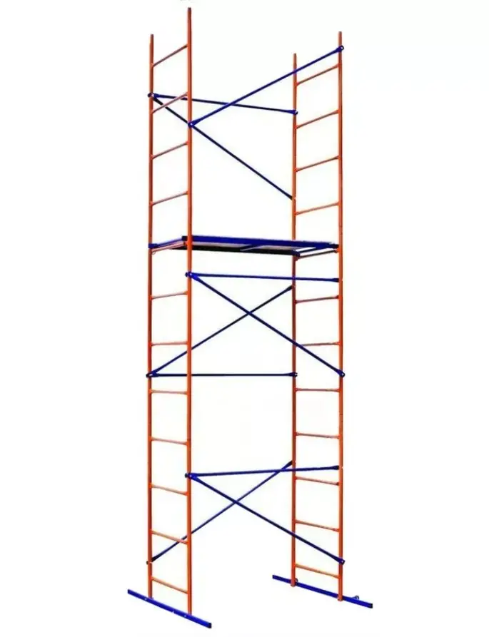 Устанавливаем на ровной площадке напротив и параллельно друг друга 2 лестницы, заранее закрепив снизу опорный брус.