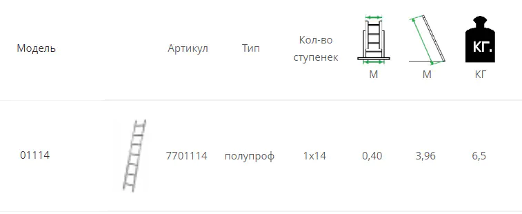 Лестница алюминиевая односекционная 14 ступеней. Общая высота - 396 см. Лёгкая и прочная. Алюминиевый профиль, широкие алюминиевые ступени с рифленой антискользящей поверхностью, пластиковые насадки на ножках обеспечивают стабильность. Надёжно закреплённые в стойках пластиковые наконечники препятствуют скольжению. Соответствует ТУ BY 190212942.001-2011.