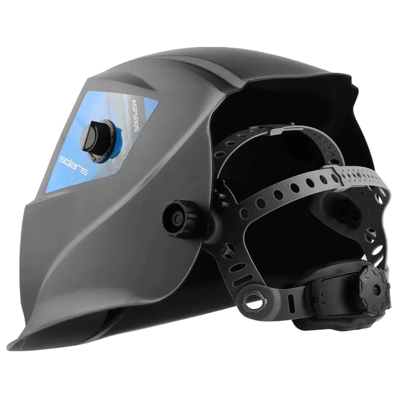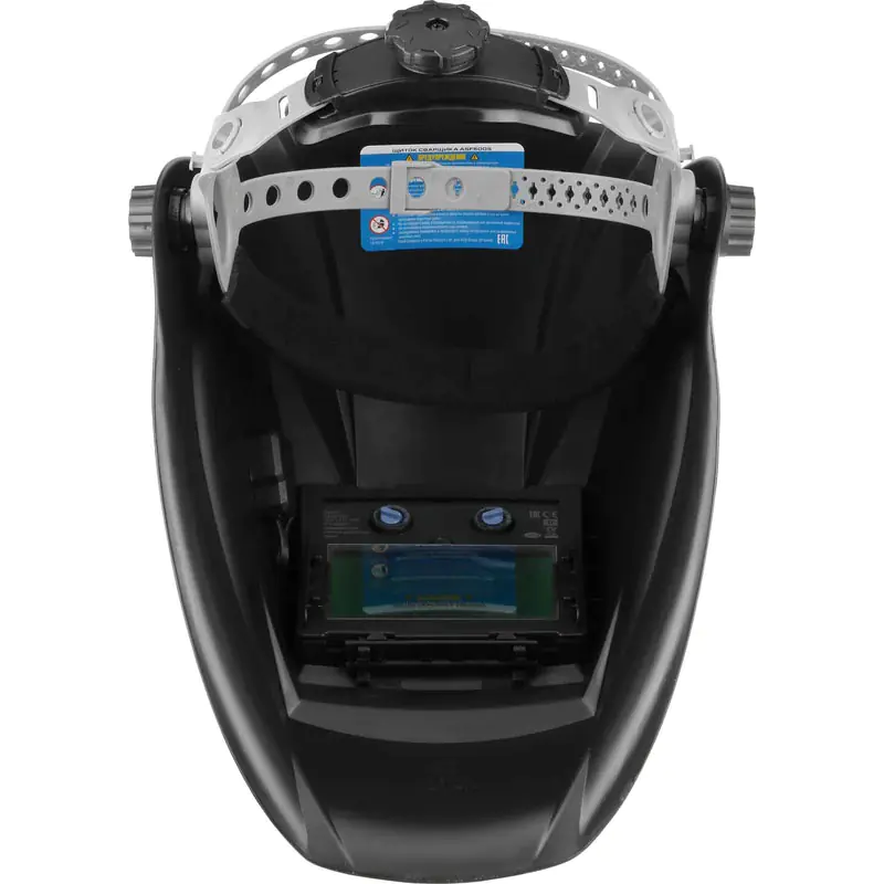 Светофильтр переключается из светлого режима в темный за 0,04 мс. Сменная батарея CR2032. Щиток оснащен двумя датчиками, реагирующими на сварочную дугу. Чувствительность датчика и время затемнения (от 0,1 до 1 с) регулируются. Щиток оснащен солнечной батареей. Светофильтр заменяем, размер просматриваемой части: 94х43 мм. Затемнение в светлом состоянии: DIN 4, в темном – DIN 9-13.