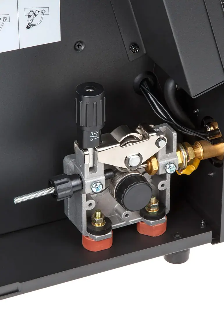 - Возможность смены полярности для сварки проволокой без газа (FLUX).