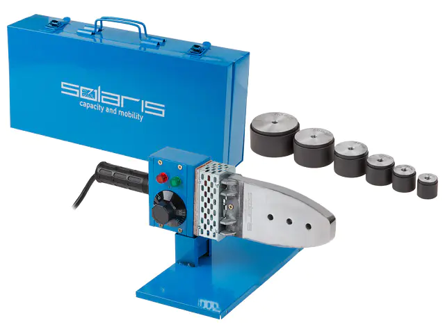 Сварочный аппарат мощностью 1000 Вт с регулировкой температуры и оснащенный 6-ю насадками от 20 до 63 мм — оптимальный выбор для проведения разнообразных сантехнических работ. Гарантия 24 месяца.