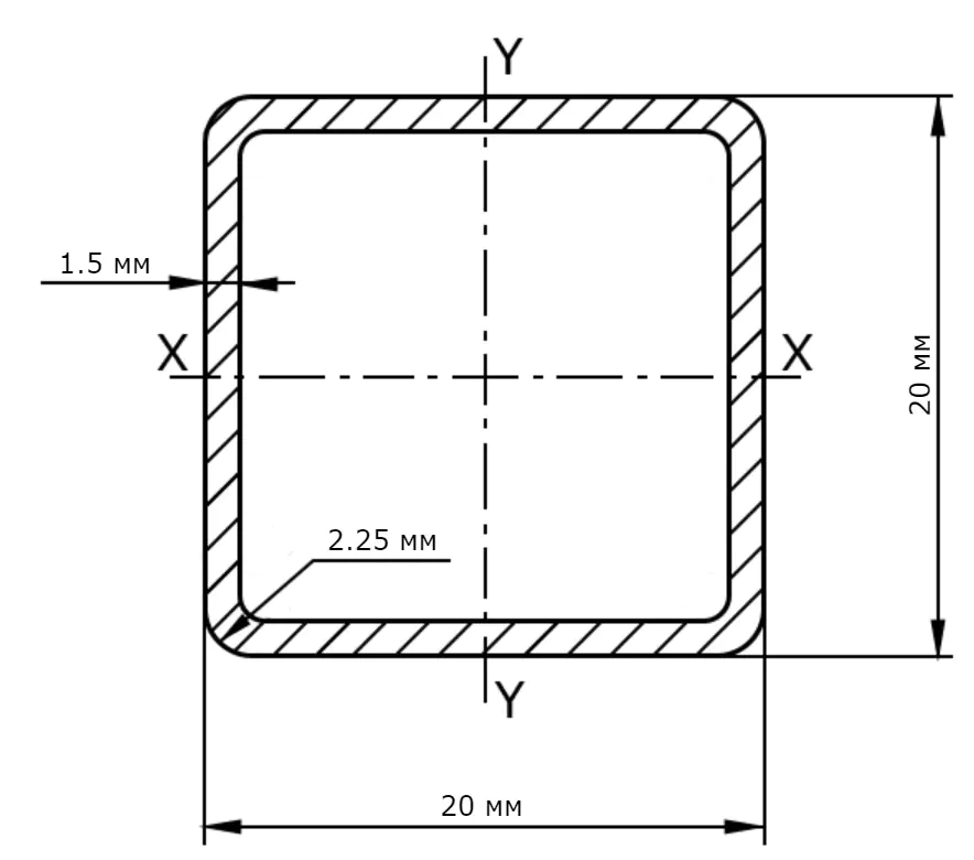 Стальная профильная труба квадратного сечения 20х20х1,5 мм. Используется при монтаже внутренних и наружных каркасов зданий и сооружений, строительных лесов, опор, ограждений, заборов, дверей, теплиц, рекламных щитов и т. д. Труба производится из углеродистой стали марки Ст3ПС. Трубы могут иметь отклонения от заявленной толщины: по ТУ — до 25%, по ГОСТу — до 12,5%.