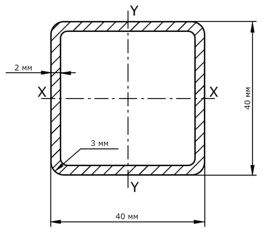 Стальная профильная труба квадратного сечения 40х40х2 мм. Используется при монтаже внутренних и наружных каркасов зданий и сооружений, строительных лесов, опор, ограждений, заборов, дверей, теплиц, рекламных щитов и т. д. Труба производится из углеродистой стали марки Ст3ПС. Трубы могут иметь отклонения от заявленной толщины: по ТУ — до 25%, по ГОСТу — до 12,5%.